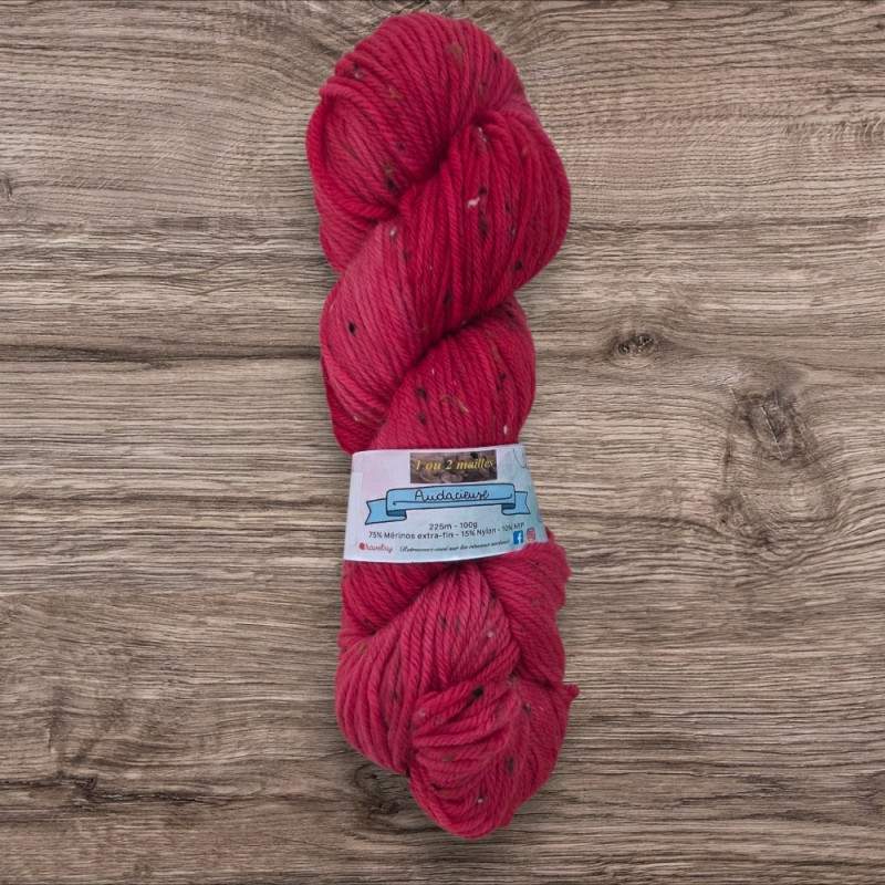 L' Audacieuse est un fil d'une douceur incomparable et un style unique avec son tweed Il s'agit du DK résistant avec son petit pourcentage de nylon , ..