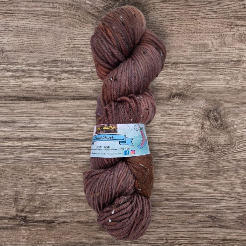 L' Audacieuse est un fil d'une douceur incomparable et un style unique avec son tweed Il s'agit du DK résistant avec son petit pourcentage de nylon , ..