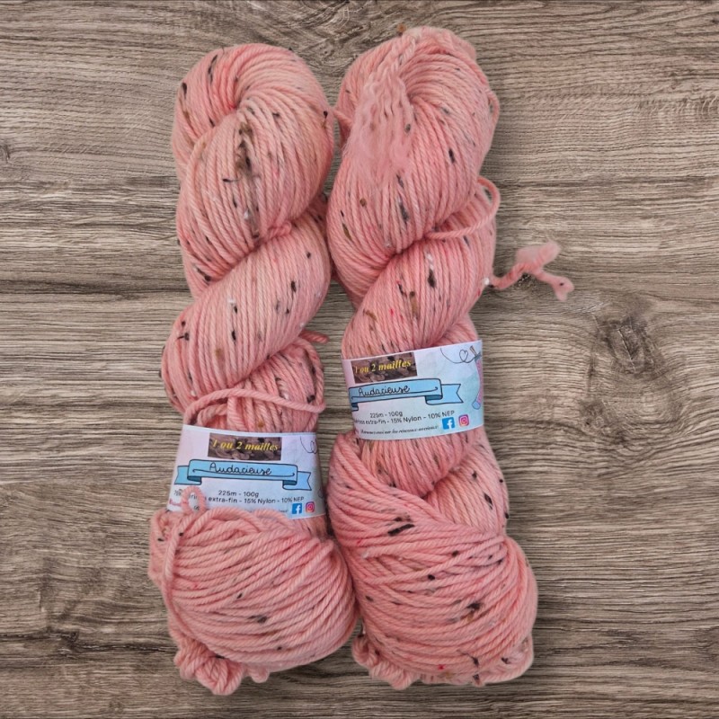 L' Audacieuse est un fil d'une douceur incomparable et un style unique avec son tweed Il s'agit du DK résistant avec son petit pourcentage de nylon , ..