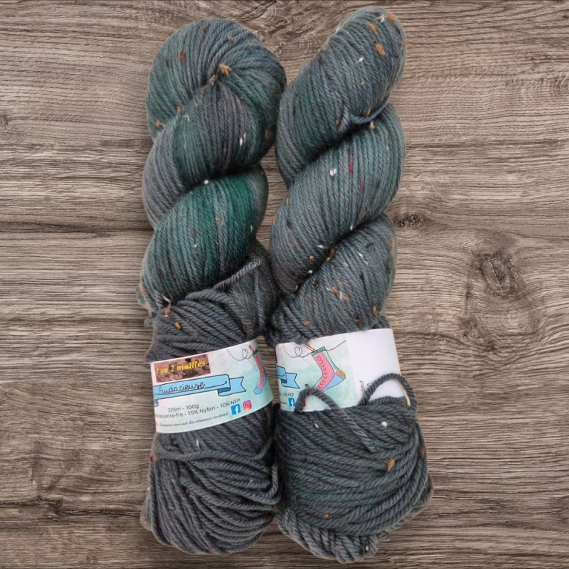 L' Audacieuse est un fil d'une douceur incomparable et un style unique avec son tweed Il s'agit du DK résistant avec son petit pourcentage de nylon , ..