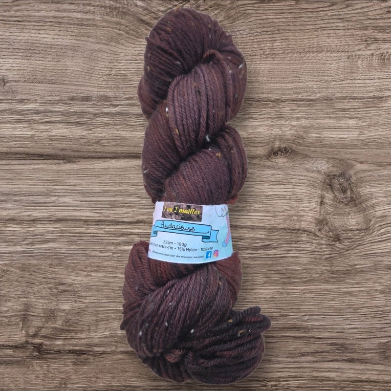 L' Audacieuse est un fil d'une douceur incomparable et un style unique avec son tweed Il s'agit du DK résistant avec son petit pourcentage de nylon , ..