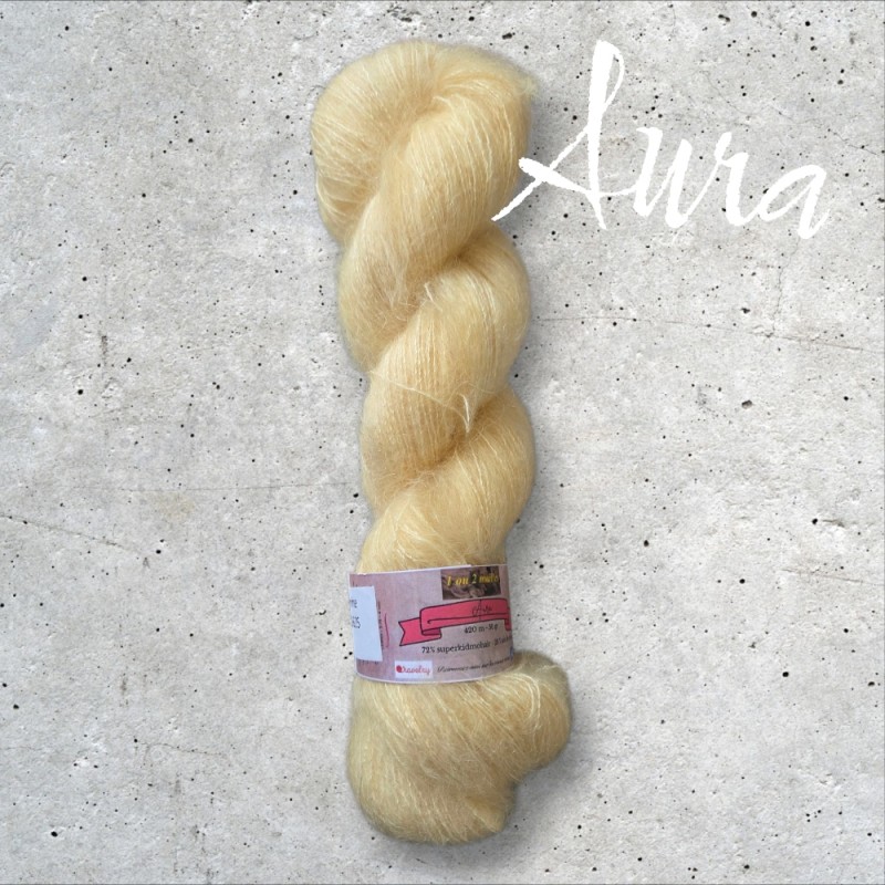 AURA, comme le halo subtil qui entoure une lumière ou une présence, donne son nom à ce fil d’exception. Léger, doux et lumineux, ce fil lace haut de gamme est composé de superkid mohair et de soie de mûrier. Idéal pour les tricots fins, ajourés ou en superposition, il se travaille seul, en double ou associé à un autre fil pour enrichir les textures.