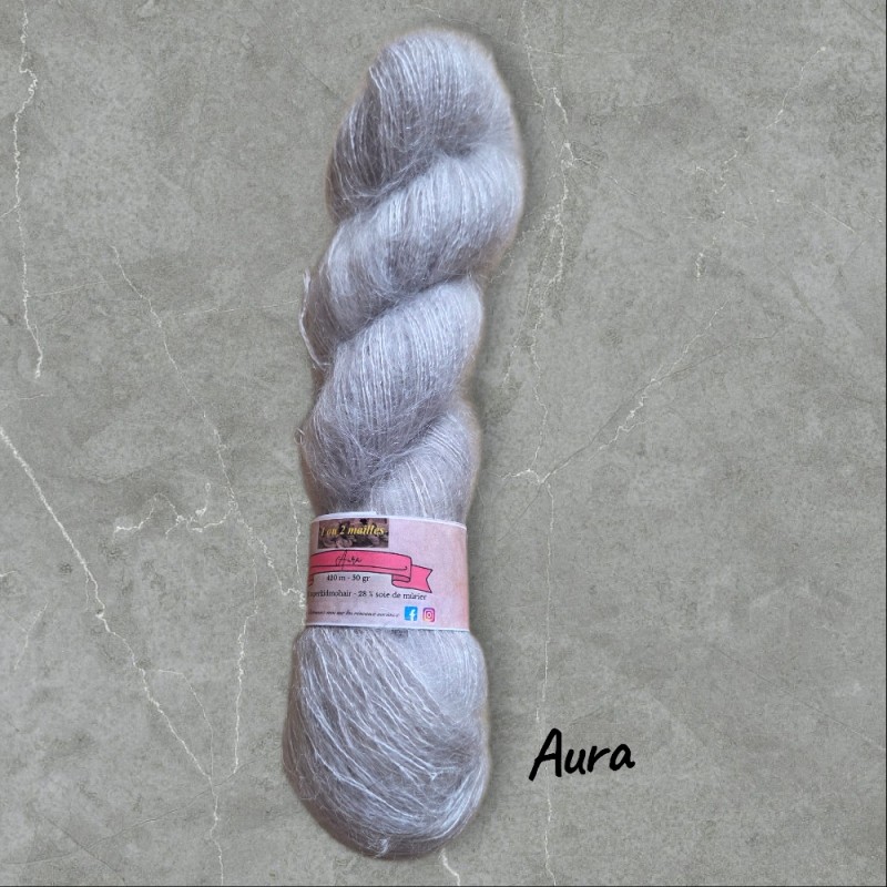 AURA, comme le halo subtil qui entoure une lumière ou une présence, donne son nom à ce fil d’exception. Léger, doux et lumineux, ce fil lace haut de gamme est composé de superkid mohair et de soie de mûrier. Idéal pour les tricots fins, ajourés ou en superposition, il se travaille seul, en double ou associé à un autre fil pour enrichir les textures.