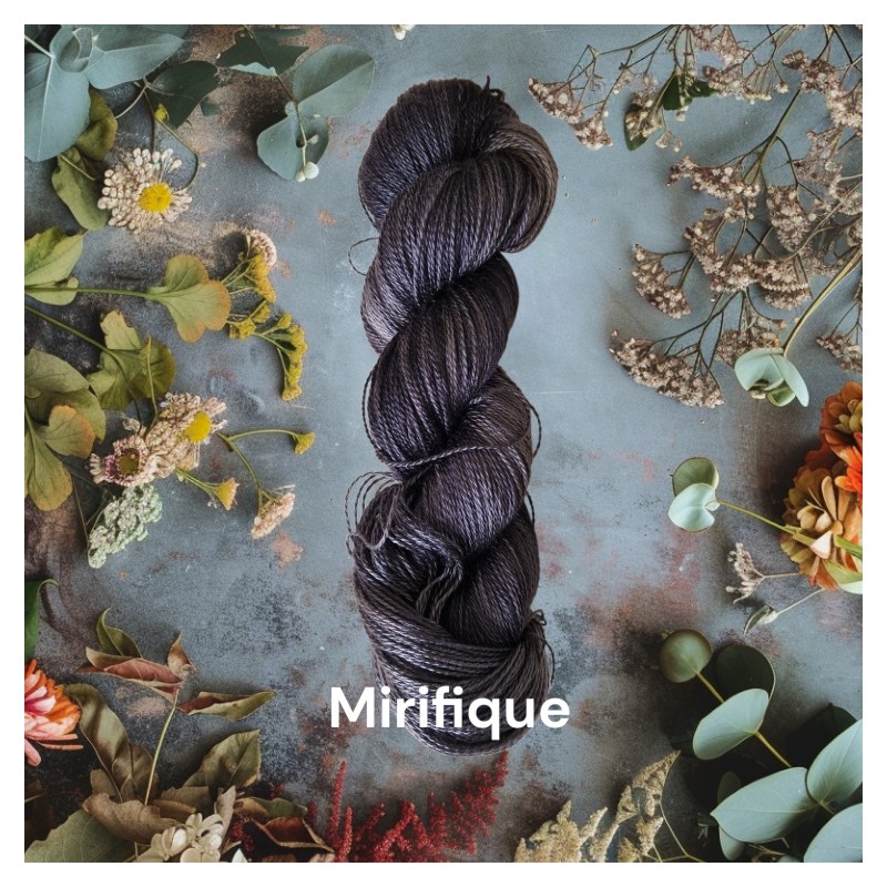 Le fil à tricoter mirifique est un fil 100% soie de murier. Un écheveau de 100g mesure 600m. Le fil à tricoter et récupéré brut de filature et teinté par mes soins avec un des teintures écologiques 100% oekotex et sans matériaux lourds.