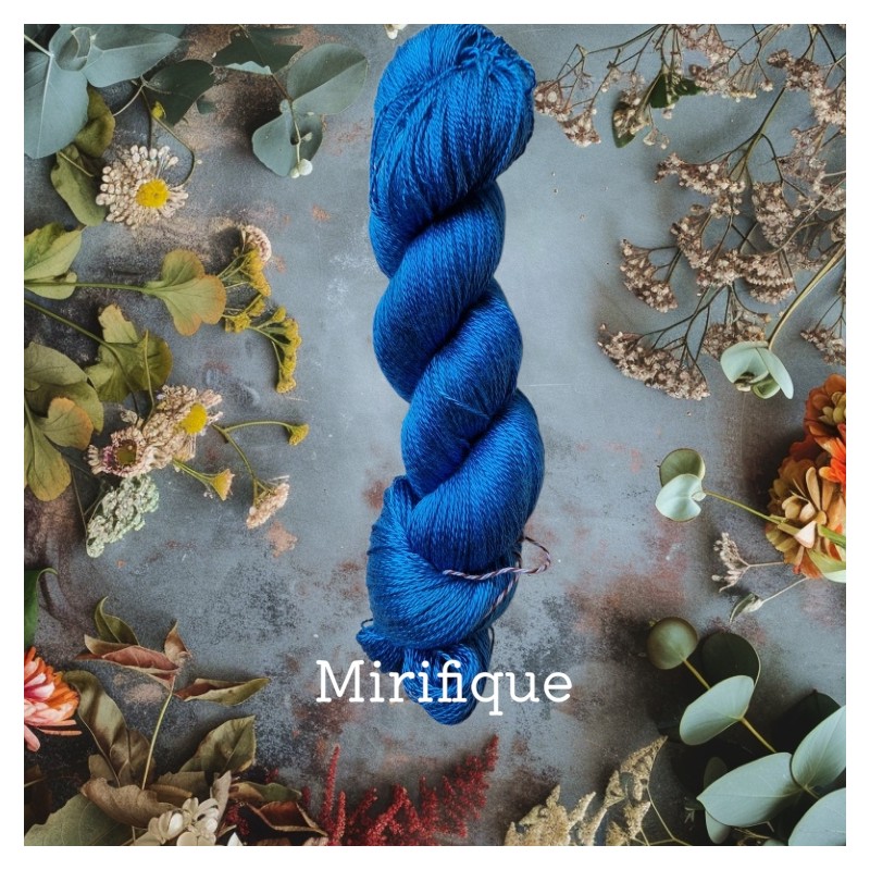 Le fil à tricoter mirifique est un fil 100% soie de murier. Un écheveau de 100g mesure 600m. Le fil à tricoter et récupéré brut de filature et teinté par mes soins avec un des teintures écologiques 100% oekotex et sans matériaux lourds.