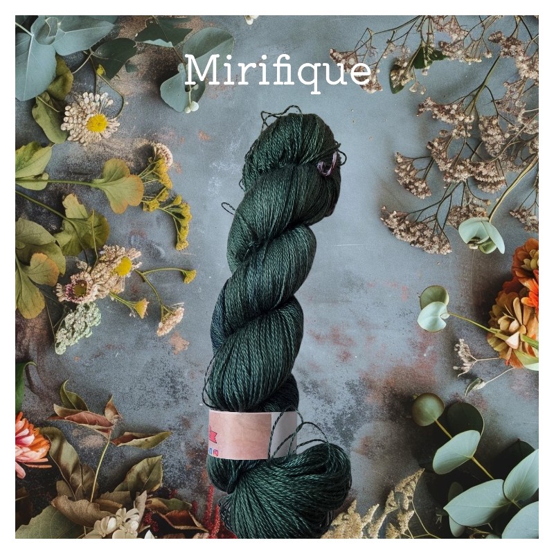 Le fil à tricoter mirifique est un fil 100% soie de murier. Un écheveau de 100g mesure 600m. Le fil à tricoter et récupéré brut de filature et teinté par mes soins avec un des teintures écologiques 100% oekotex et sans matériaux lourds.
