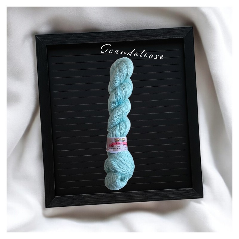 La scandaleuse, est un fil qui va vraiment loin tricoté simple ou en double . à essayer de toute urgence avec le pull Pénélope, le gilet autour du bouton en double ou en simple le subtile.