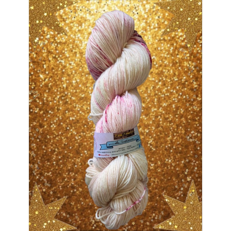 La Tropézienne est un fil haut de gamme, idéal pour vos projets de chaussettes et accessoires élégants. Composée à 75 % de mérinos extrafin superwash, 15 % de nylon et 10 % de stellina, elle offre une douceur incomparable, une résistance accrue et une touche subtilement scintillante grâce aux paillettes intégrées.